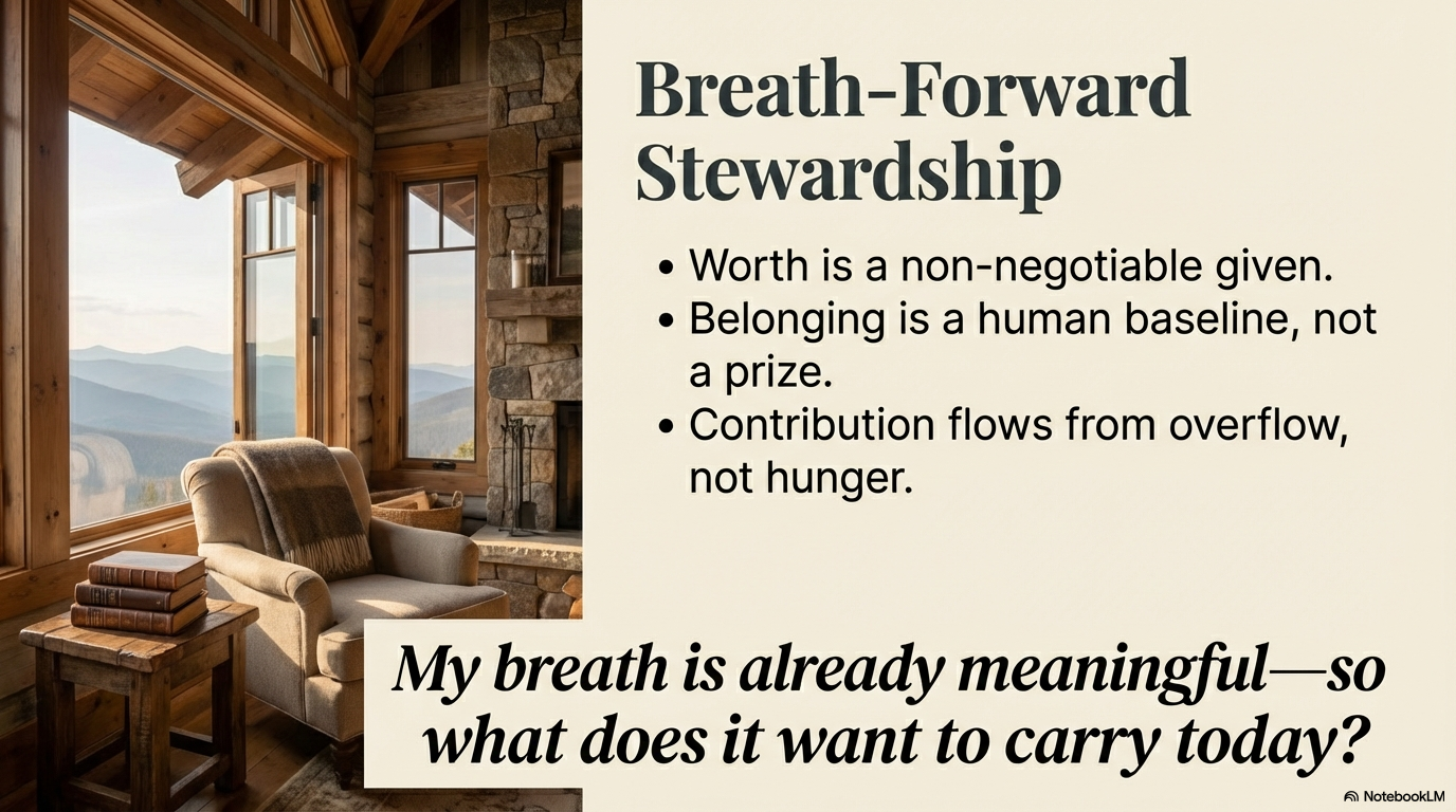 Breath interrupts that pattern. Not as a concept. As proof. You are here, and that is enough to begin.